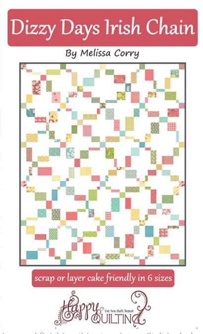 The Dizzy Days Irish Chain Quilt by Melissa Corry of Happy Quilting is a great quilt that puts a modern twist on a traditional design. With the random layout of each dizzy block, no two quilts will look the same. This pattern is suitable for all skill levels, and includes easy-to-follow, step-by-step instructions for cutting, piecing, and finishing.