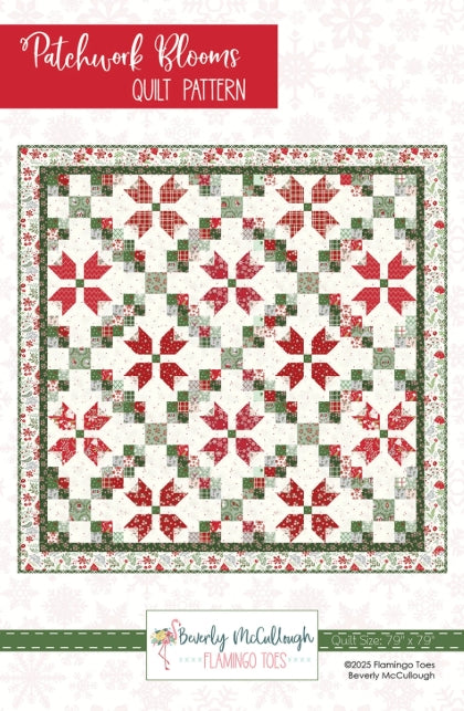 Patchwork Blooms is a colorful and fun quilt to sew together. This quilt looks gorgeous in Christmas fabrics with the big floral blocks and sweet patchwork chain between them, but it would also look great in any floral collection. Traditional piecing. Finished quilt measures 79" square.